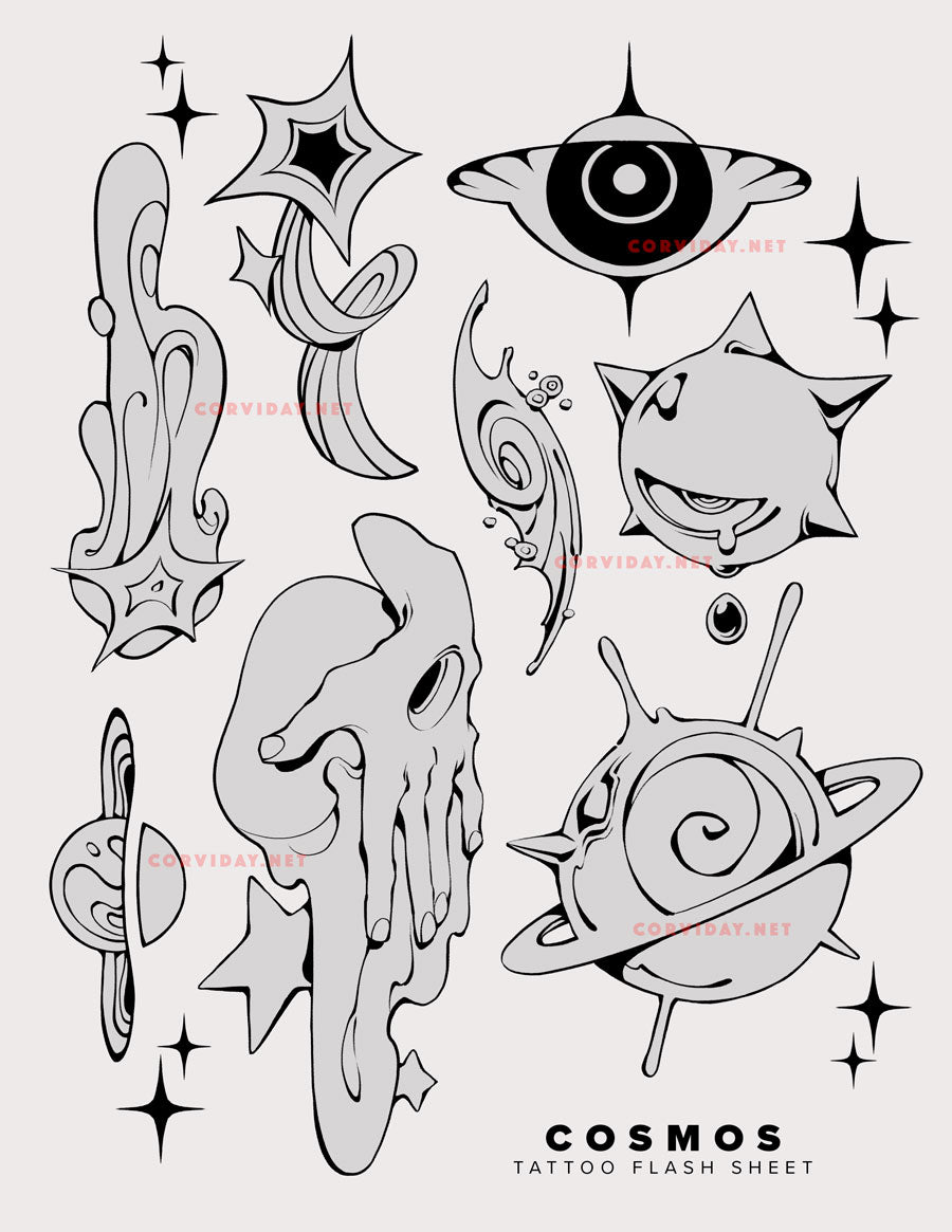 COSMOS Tattoo Flash Sheet