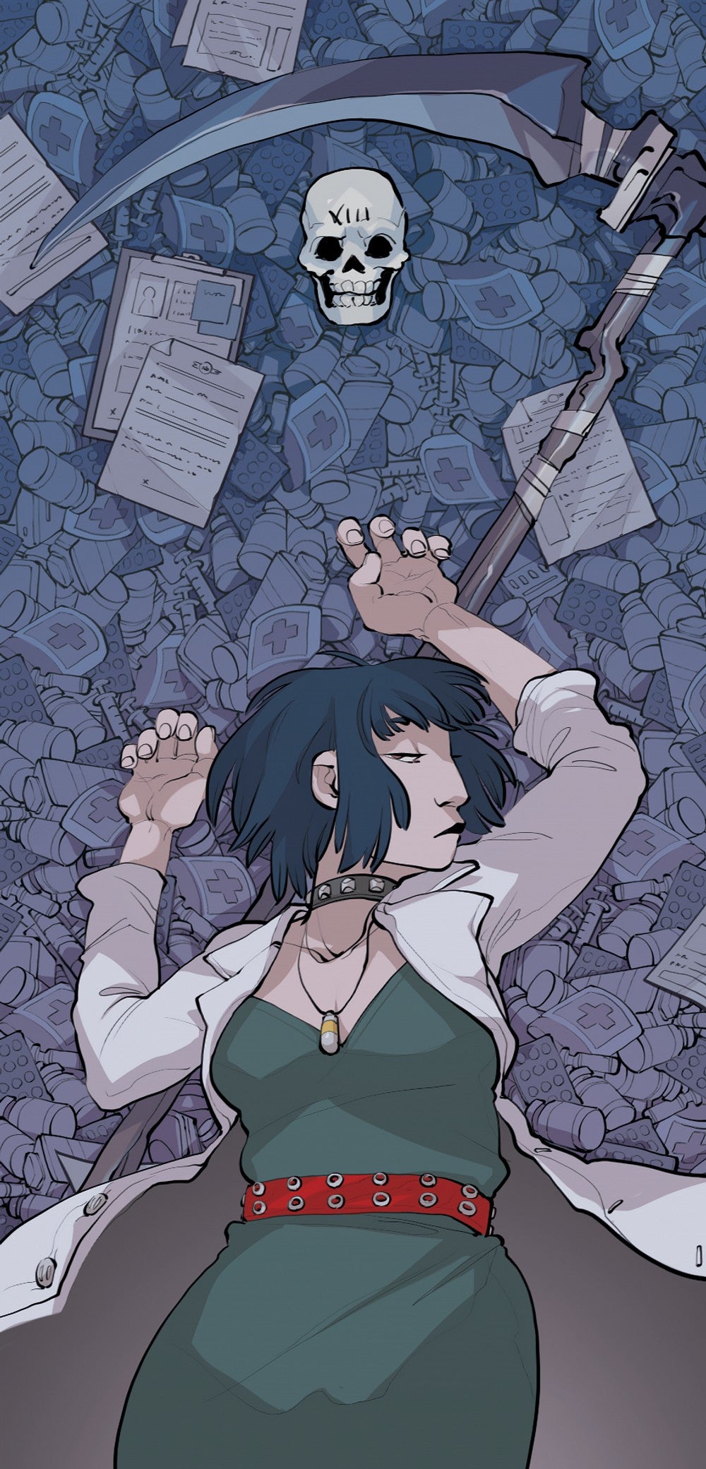 Bookmark-styled print featuring Takemi from P5. Featured in the P5 Tarot card project (XIII Death).